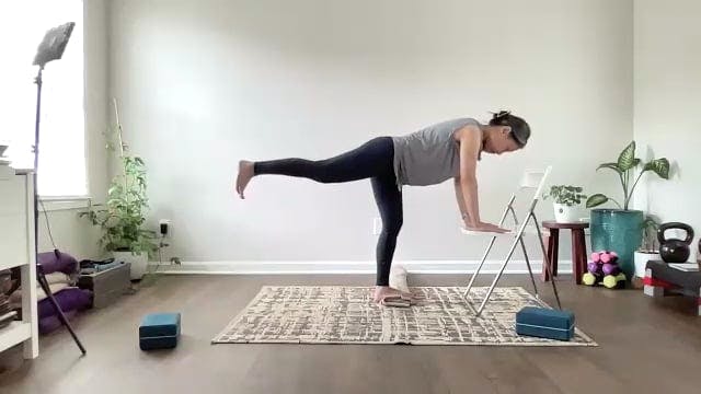 4/4/25: This class consists of classic sequences that I taught at Emory Healthcare incuding seated foot mobility, ankle mobility on the blanket roll and the primal vinyasa sequence using a chair. It's a great workout for whole body moblity that's gentle and effective.