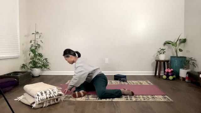 6/15/25: This sequence weaves in self-massage, movement and a restorative pose for the three major areas of tension: hips, low back and top of the shoulders. Allow the physical reset to lull your body into a more relaxed and integrated state.